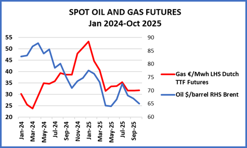 Oil and gas are critically important commodities and major influences on prices. In most of 2024, gas had been increasing in price while oil has been falling. But since the start of this year until recently prices of both have been falling. The situation in the Gulf appears to have had a relatively minor impact on prices. Indicators of weak demand in China, the uncertain impact of Trump’s tariff policy and the decision by Saudi Arabia to facilitate lower oil prices, are the main influences.